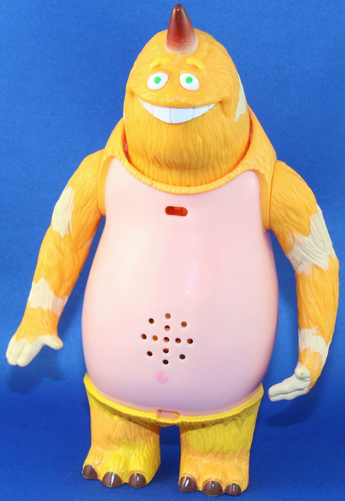 - George Sanderson's feature is brilliant, but why the heck did they put the speaker on his front? Put that thing on his back! I mean, I know most kids aren't in it for the aesthetics, but have some sense of style, toy designers! Otherwise, it's a cute idea.